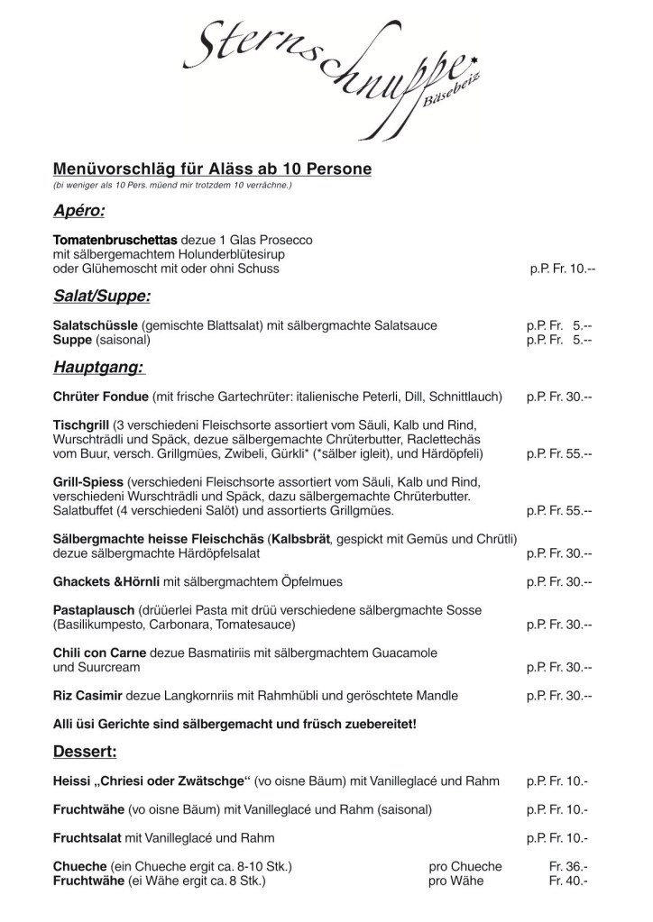 Ideal für Apéros, Geburtstäg, Familiefäschtli, Konfirmatione, Chlii-Firmealäss usw.